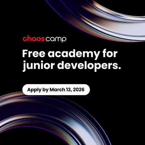 Кандидатствайте до 13 Март 2026 и станете част от общност, която създава, експериментира и расте заедно: https://www.chaos.com/chaos-camp
