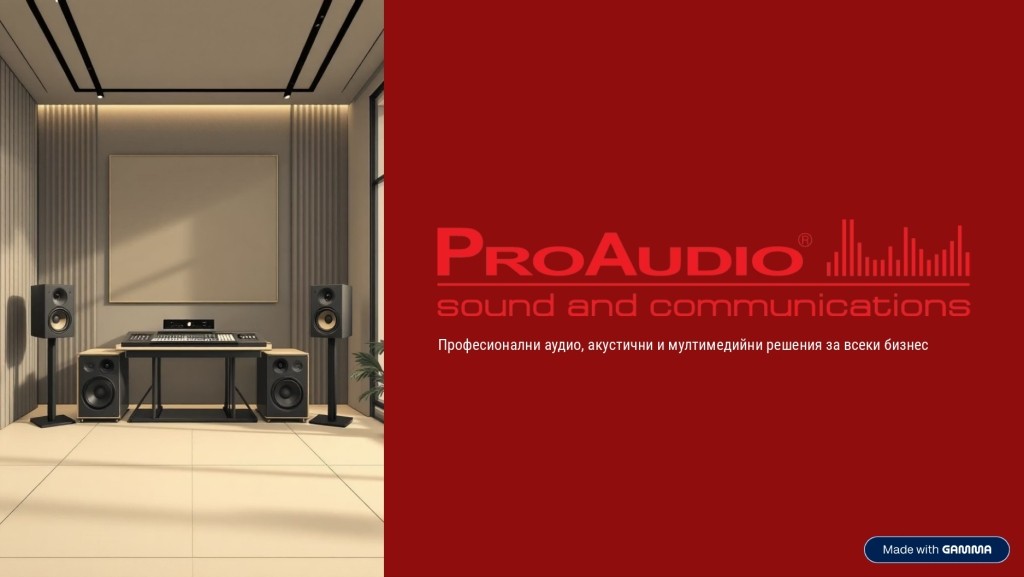 ProAudio e българска компания, специализирана в професионални аудио, акустични и мултимедийни решения. Нашият екип комбинира задълбочено инженерно мислене и стратегически подход, за да доставя технически обосновани и икономически ефективни решения.