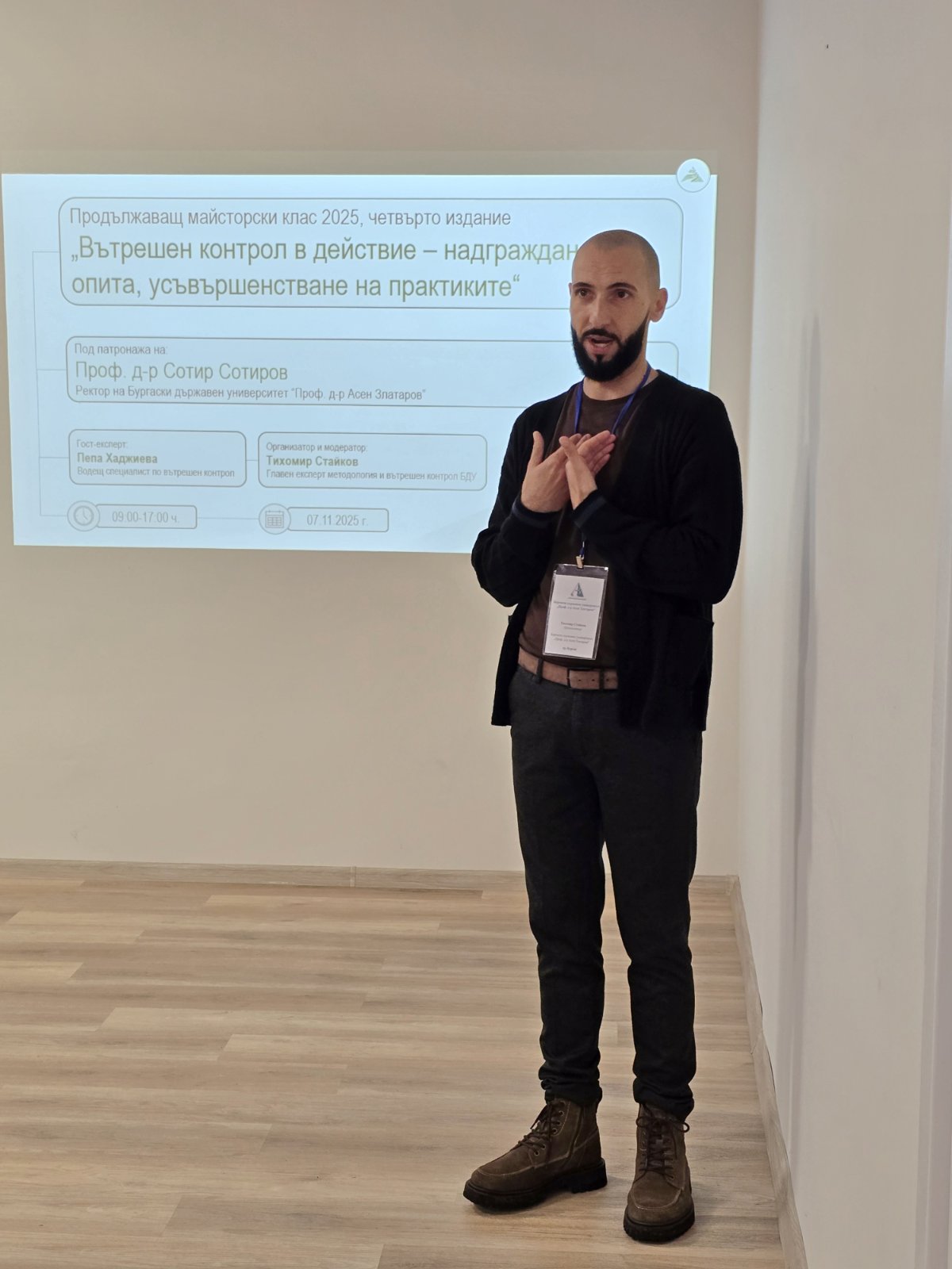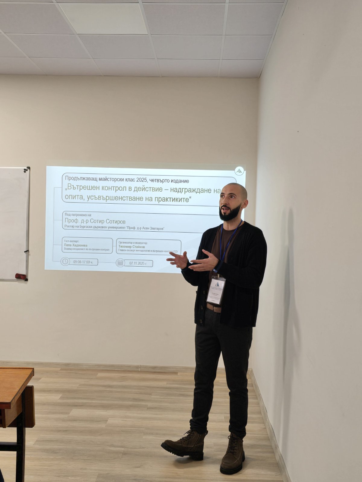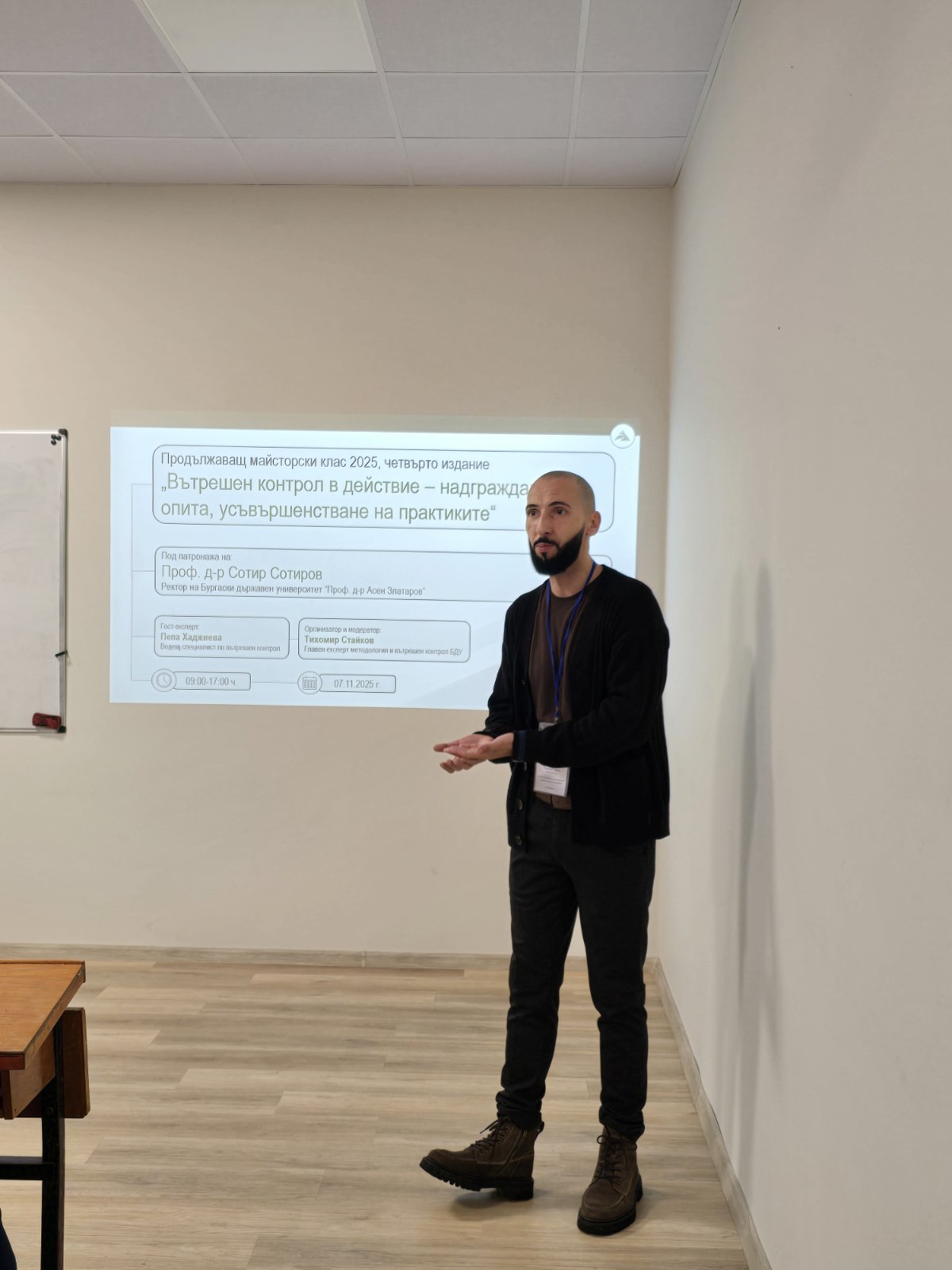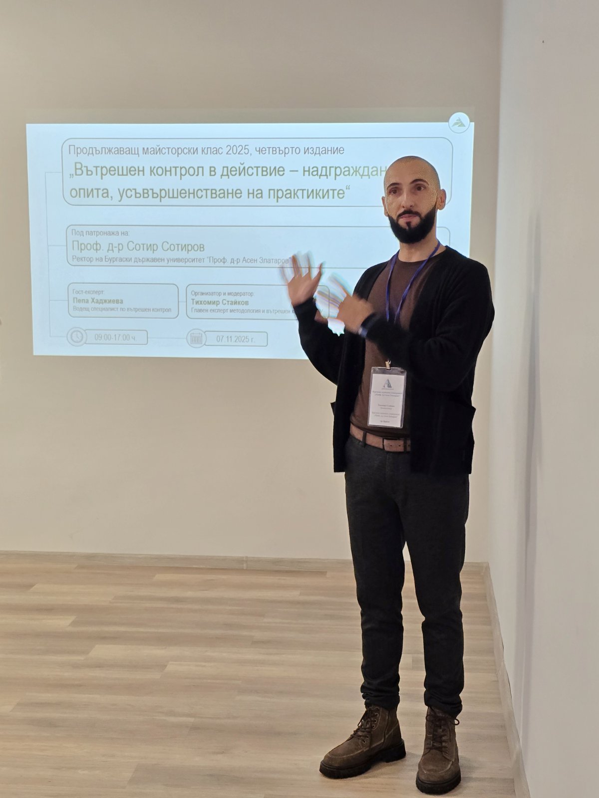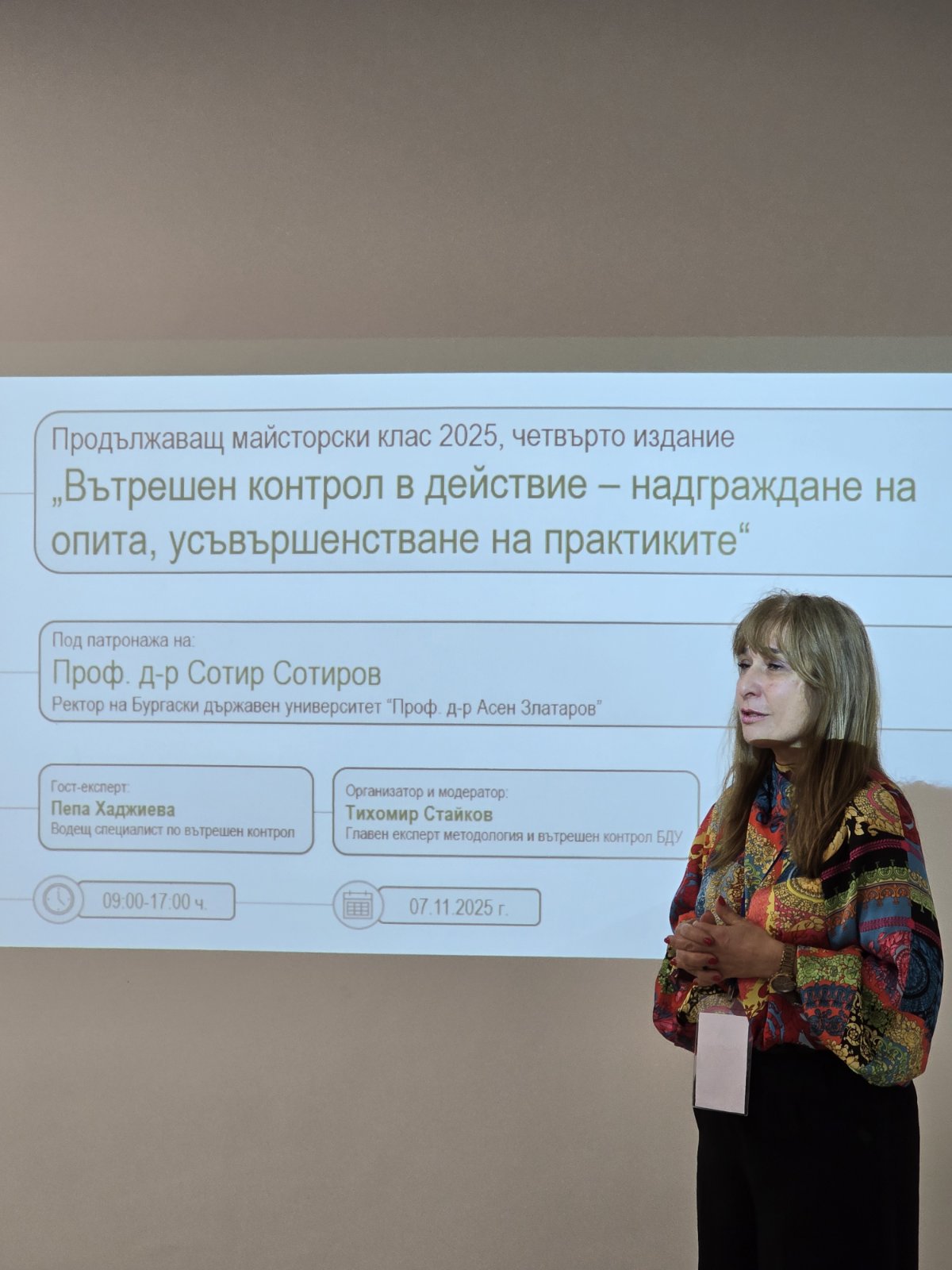 Бургаският държавен университет „Проф. д-р Асен Златаров“ проведе четвърто издание на националния форум за експерти по вътрешен контрол. След два практически семинара в предходните издания, тази година форматът е надграден – събитието е продължаващ майсторски клас „Вътрешен контрол в действие – надграждане на опита, усъвършенстване на практиките“.