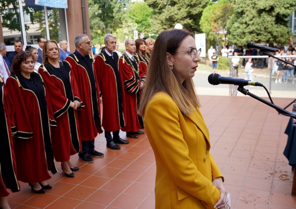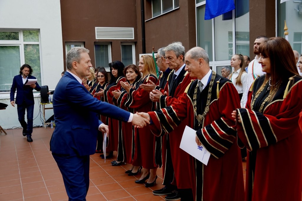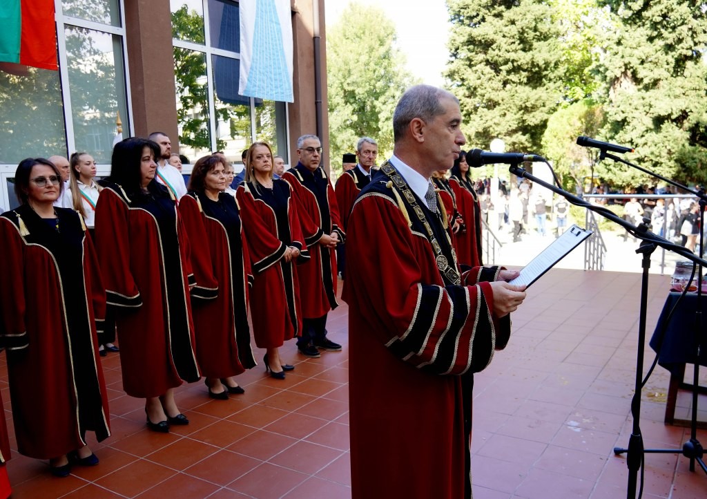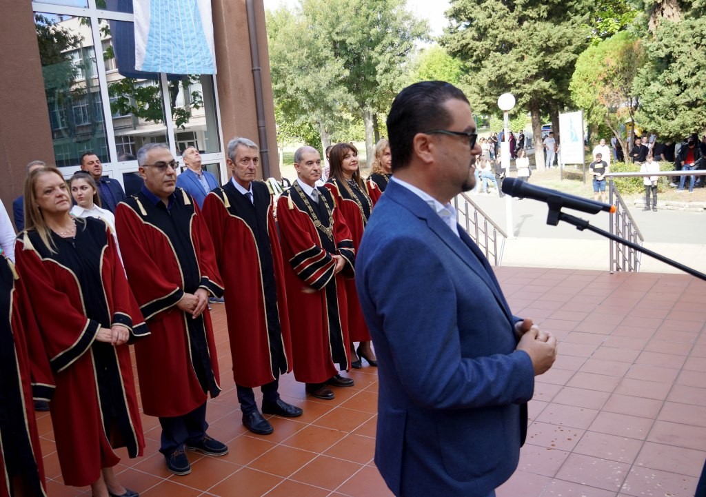 „Приветствам ви с новата академична година. За нас е голяма гордост да работим съвместно с вас за увеличаване студентите на университета и за усъвършенстване на неговия академичен състав“, бяха думите на областния управител Владимир Крумов. “Бъдете уверени, че сте избрали един от най-добрите университети в страната – и като материална база, и като преподаване, и като последващи възможности за реализация“, обърна се към първокурсниците той.