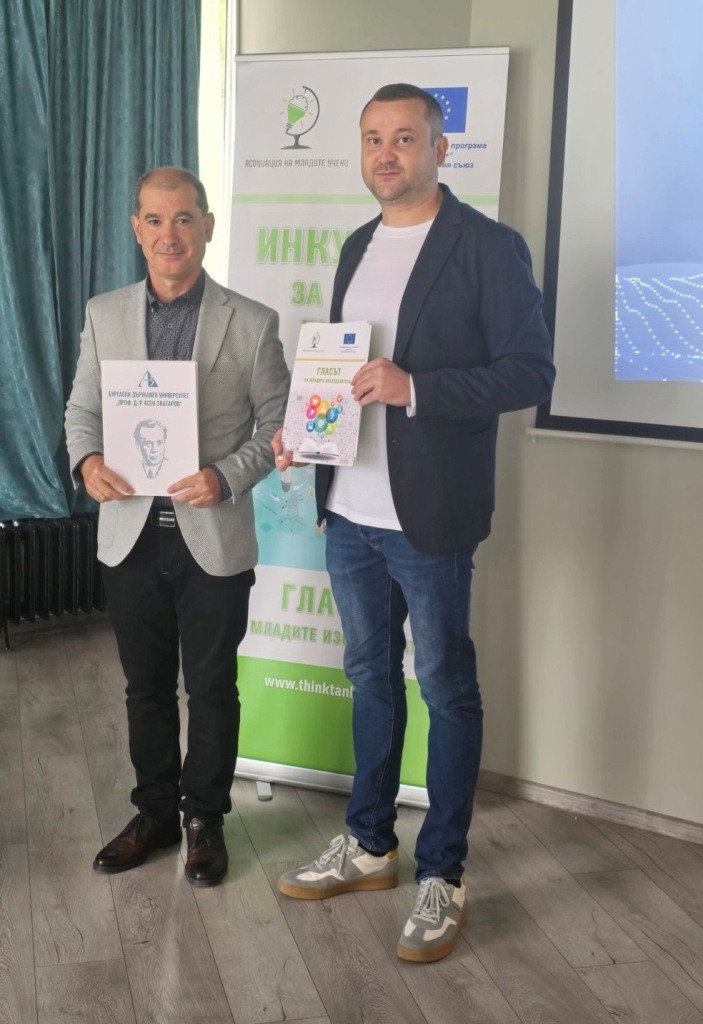Събитието бе организирано от сдружение „Асоциация на младите учени“. В неговите рамки се подписа меморандум за сътрудничество между Бургаския държавен университет и сдружението. Подписи под документа поставиха ректорът на висшето училище проф. д-р Сотир Сотиров и председателят на Асоциацията Вадим Рошманов.