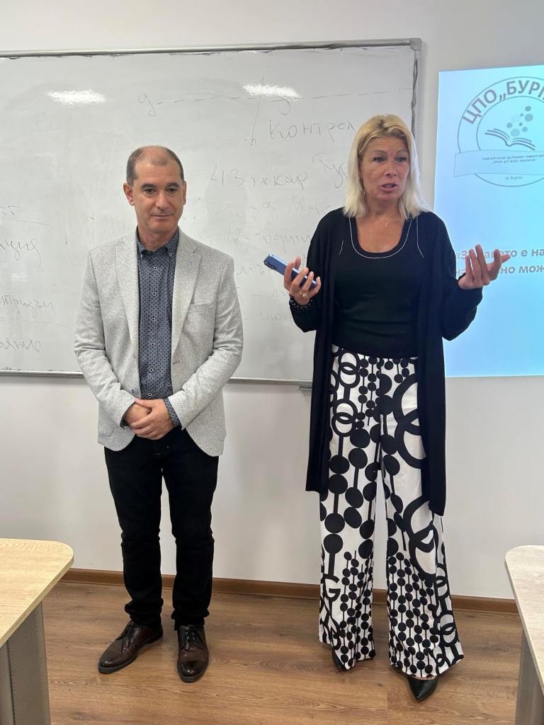 Курсистите бяха посрещнати от ректора на Бургаския държавен университет проф. д-р Сотир Сотиров и директора на ЦПО доц. д-р Марияна Йорданова, д.м. На срещата присъства и директорът на дирекция „Бюро по труда“ в Поморие Стефана Караджова.