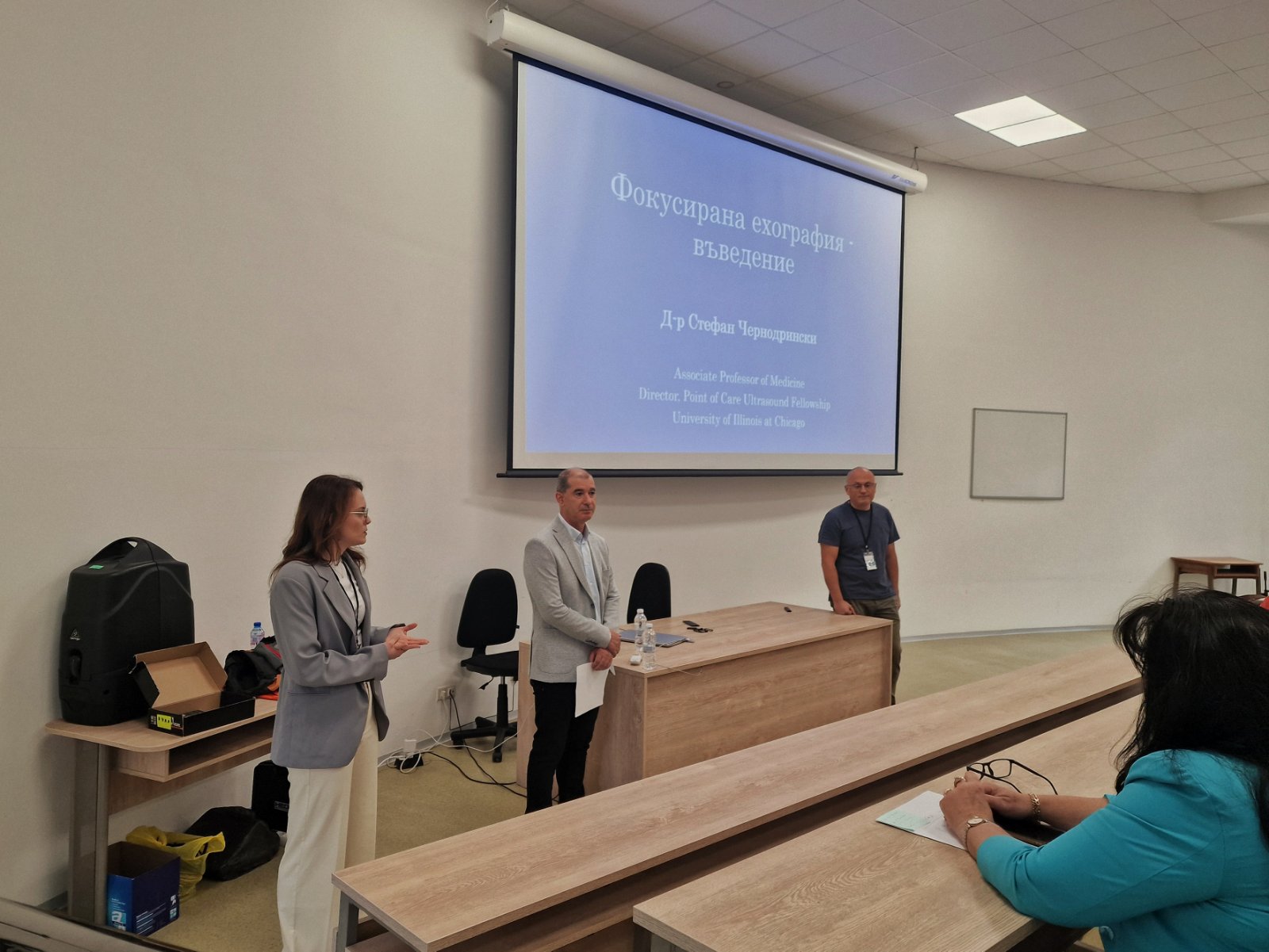 Програмата на двудневния уъркшоп включваше впечатляващи лекции и практически демонстрации, водени от изключителни специалисти – доц. Стефан Чернодрински, д-р Гергана Иванова, д-р Кристиан Дервишов и д-р Борис Таблов. В рамките на обучението участниците имаха възможност да се потопят в разнообразни теми, сред които ехографска диагностика на абдоминална аорта и дълбока венозна тромбоза, POCUS за бял дроб, FAST протокол и интегрирани подходи при остра дихателна недостатъчност. Практическите демонстрации обогатиха теоретичните знания с реални умения и създадоха атмосфера на активно учене, обмяна на опит и професионално израстване.