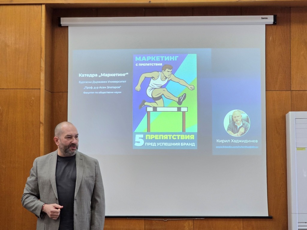 Зала 316 във Факултета по обществени науки на Бургаския държавен университет „Проф. д-р Асен Златаров“ бе препълнена по време на публичната лекция на тема „5 препятствия пред успешния бранд“. Събитието бе организирано от Катедра „Маркетинг“ към Факултета по обществени науки и привлече широк интерес сред студенти, преподаватели и гости.