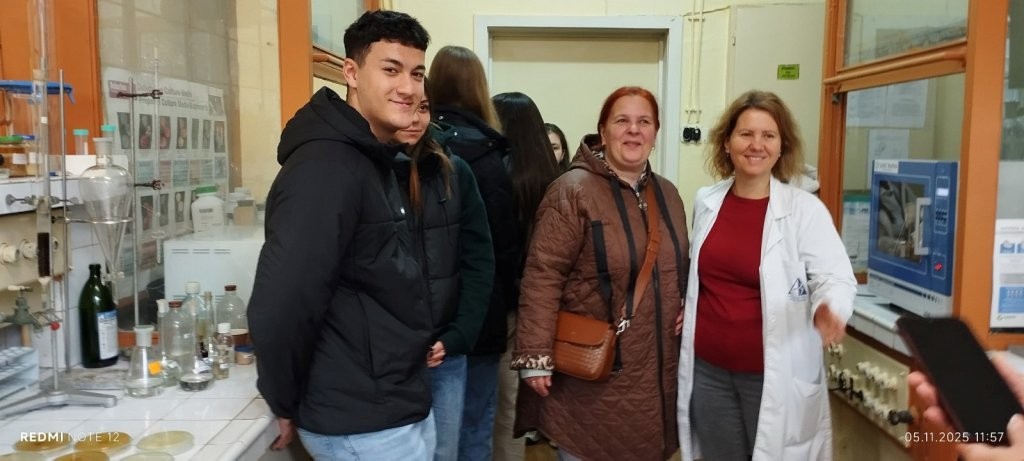 Възпитаниците на гимназията посетиха лабораториите по „Микробиология“ и по „Анализ на храни“ към катедра „Биотехнология“. Под ръководството на доц. д-р Галина Йорданова и гл. ас. д-р Милка Атанасова младите посетители се запознаха с работата с микроскопи, инкубатори, автоклав, автоматичен флуоресцентен брояч. Там те имаха възможност да наблюдават различни бактерии, дрожди и плесени под микроскоп, както и да се запознаят със стандартните и иновативните методи за преброяване на клетки. На учениците бе показан и интегриран лабораторен модул за получаване на млечни продукти. Те бяха запознати с технологията на производството на различни млечни продукти, добрите лабораторни и производствени практики, както и с анализите, които се провеждат като задължителна част от производствения процес с цел осигуряване на качеството и безопасността на продукта.