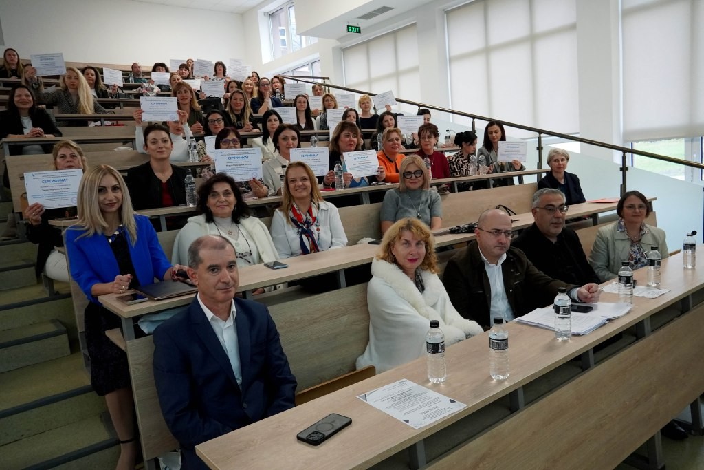 На събитието присъстваха представители на ректорското и академичното ръководство на БДУ и лекторите, които проведоха обучението на педагозите. Това са доц. д-р Петя Стефанова, доц. д-р Моника Обрейкова, доц. д-р Катя Попова, доц. д-р Пенка Вълчева, доц. д-р Златка Димитрова, доц. д-р Соня Стефанова.