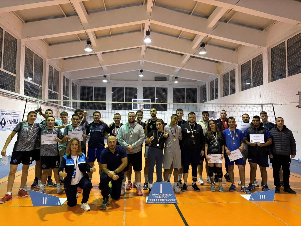 Волейболният турнир в Бургаския държавен университет „Проф. д-р Асен Златаров“ обедини поколения и постави грандиозен завършек на спортния ноември. С много адреналин, красиви отигравания и препълнена зала приключиха Есенните студентски игри 2025, организирани от катедра „Физическо възпитание и спорт“.