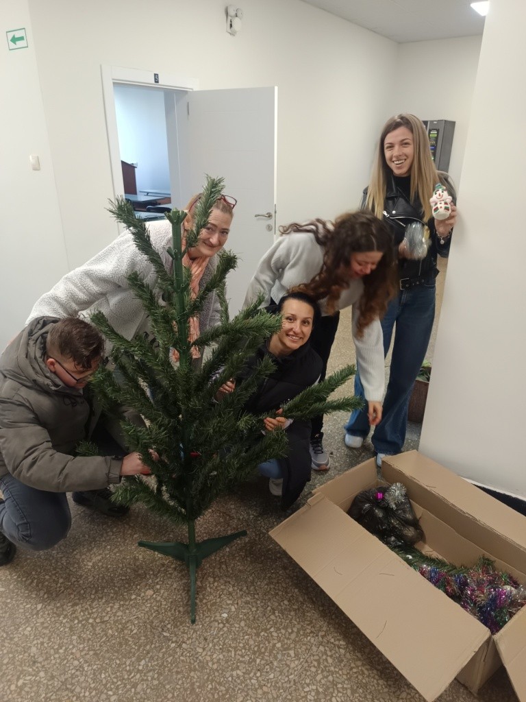 Обединени около подготовката за предстоящите празници, студентите с желание и творчество допринесоха за оформянето на предпразнична обстановка, която да внесе коледен дух и настроение за всички обучаващи се и преподаватели.