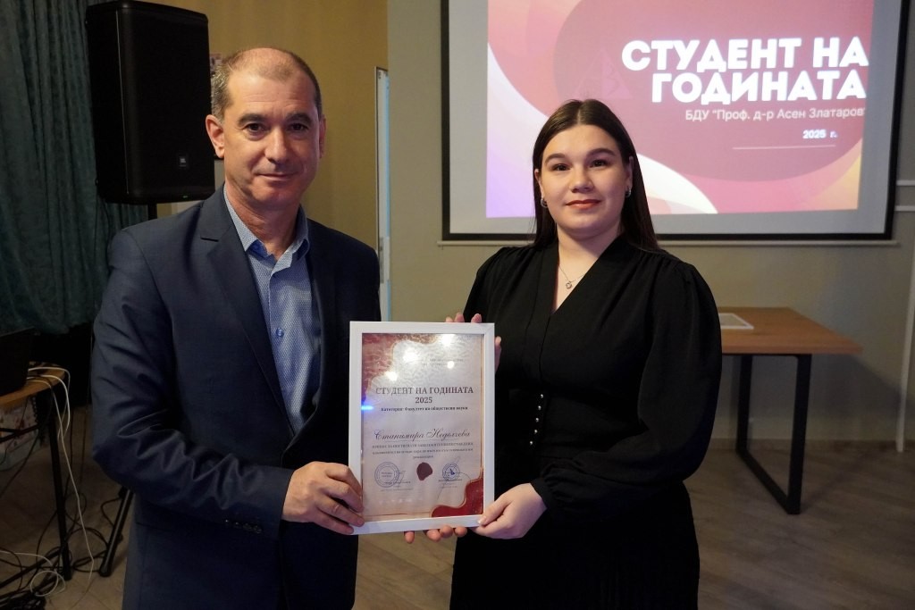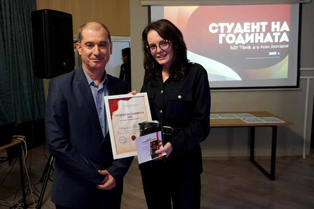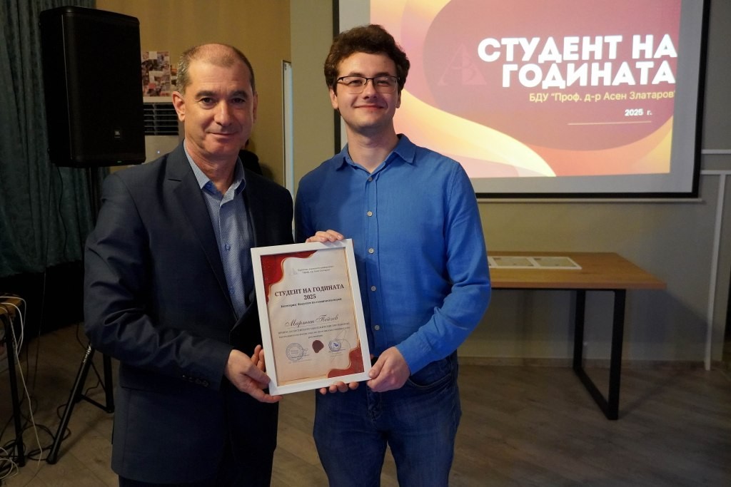 На специално празненство в Бургаския държавен университет „Проф. д-р Асен Златаров“ бяха оповестени имената на носителите на титлата „Студент на годината“. Всяко едно от основните звена във висшето училище представи свой номиниран, който, освен висок успех, се изискваше да има и научни изяви в конференции, симпозиуми, в стажантски програми и благотворителни инициативи.