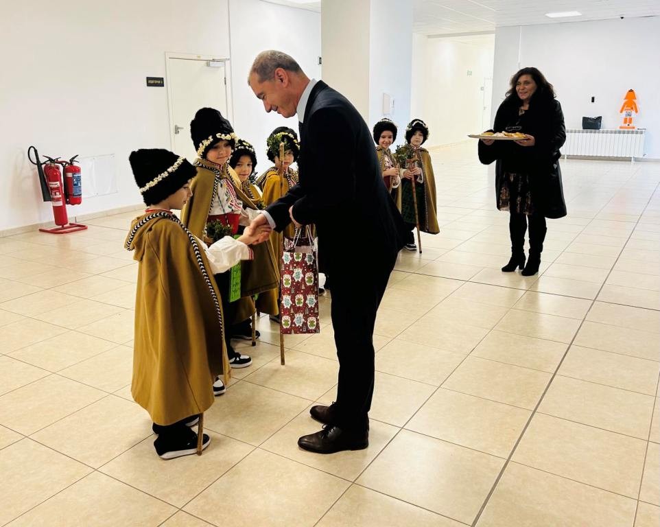 Малките коледари бяха тържествено посрещнати с питка и лакомства от ректора на Бургаския държавен университет проф. д-р Сотир Сотиров. Той им пожела да бъдат здрави и щастливи и да открият мечтания подарък под коледната елха.