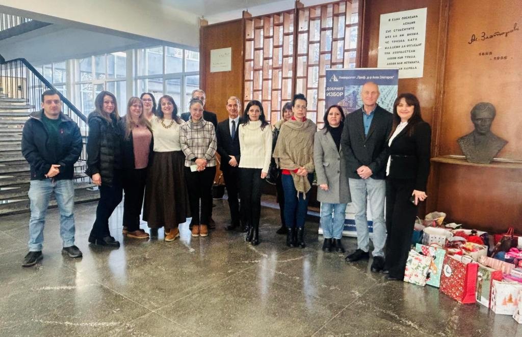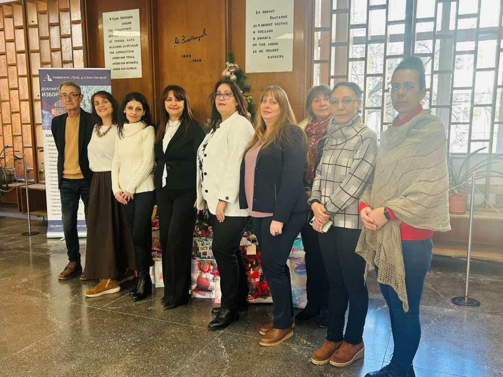 „Истинската стойност на подобни инициативи не е в самия подарък, а в жеста и вниманието, които стоят зад него. Когато човек даде частица от себе си, той не просто подарява – той създава усмивка, надежда и вяра в доброто. Благодаря на всички колеги, които с открито сърце се включиха и ще направят празника на едно дете по-светъл“, подчерта ректорът на БДУ проф. д-р Сотир Сотиров.