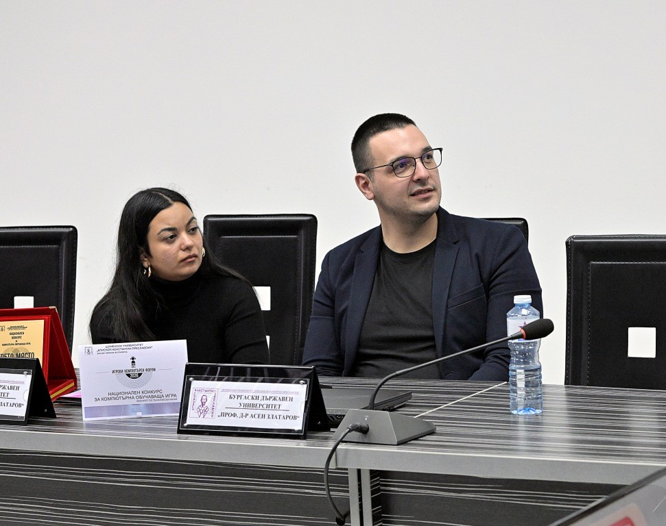 Докторантите Даниел Стоянов и Габриела Христова от катедра „Компютърни системи и технологии“ към Бургаския държавен университет „Проф. д-р Асен Златаров“ спечелиха трето място в първото издание на Националния конкурс за компютърна обучаваща игра. Те разработиха платформата „Апостол“ под научното ръководство на проф. д-р Сотир Сотиров.