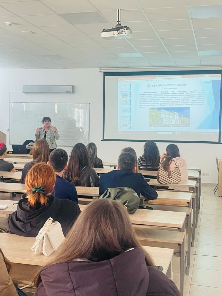 В Бургаския държавен университет „Проф. д-р Асен Златаров“ се проведе среща със студенти шести курс от специалност „Медицина“, посветена на възможностите за професионално развитие и специализация в областта на белодробните заболявания. Гост на събитието беше д-р Евелина Трошанова от Специализираната болница за активно лечение на пневмофтизатрични заболявания (СБАЛПФЗ) – Бургас.