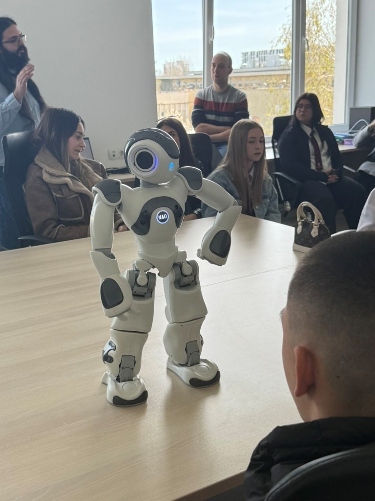 Гостите разгледаха лабораториите в центъра и се запознаха с наличното оборудване, използвано в обучението и научноизследователската дейност. Учениците имаха възможност да взаимодействат с роботите и да изпробват различни форми на интеракция с тях.