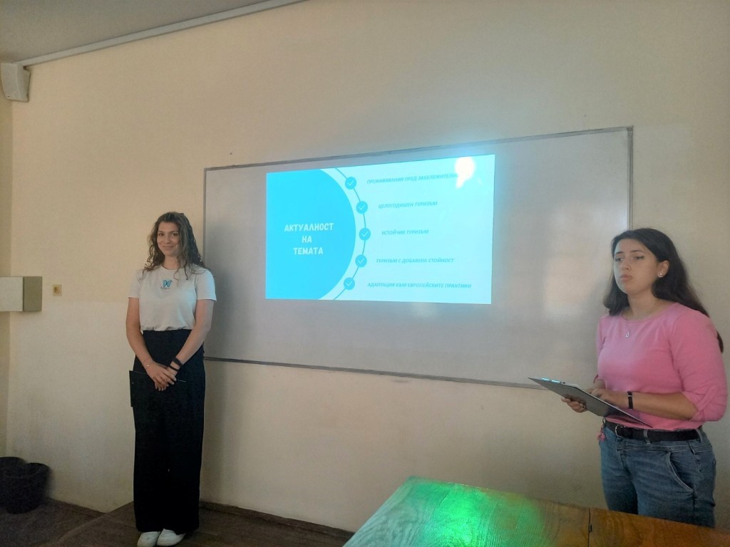 Дипломантите се отличиха с професионално подготвени презентации, ясни аргументи и впечатляващо представяне пред държавната изпитна комисия, включваща хабилитирани преподаватели и представител от туристическия бранш.