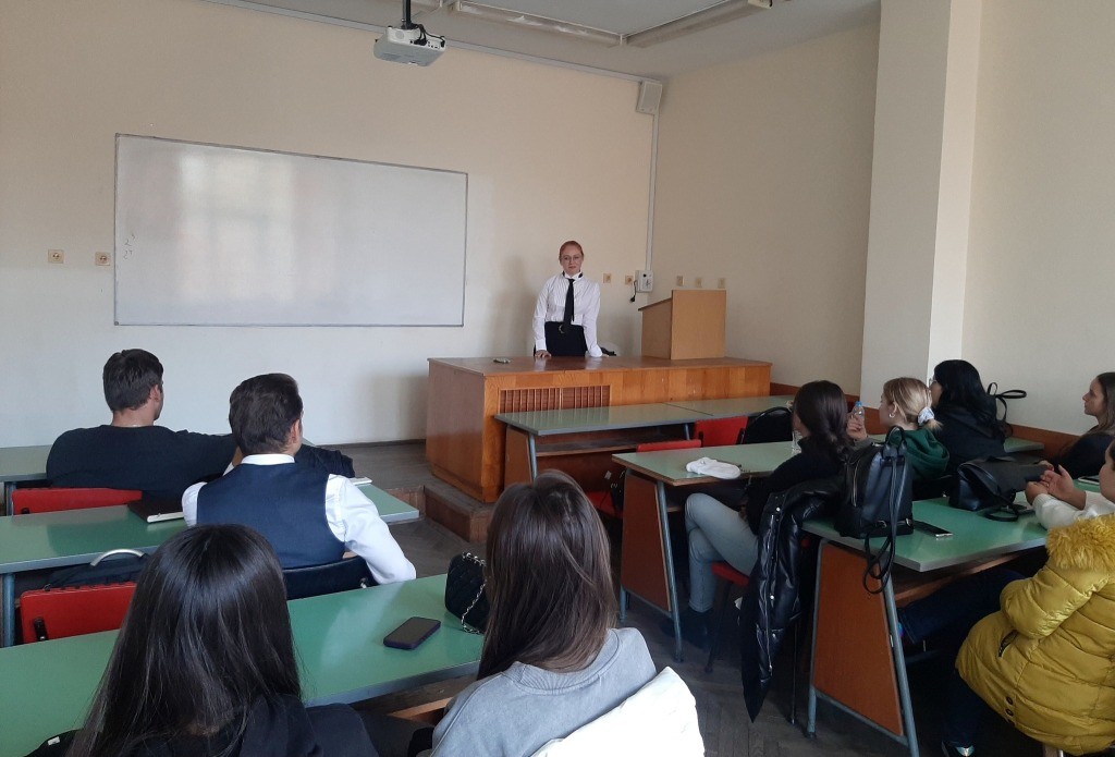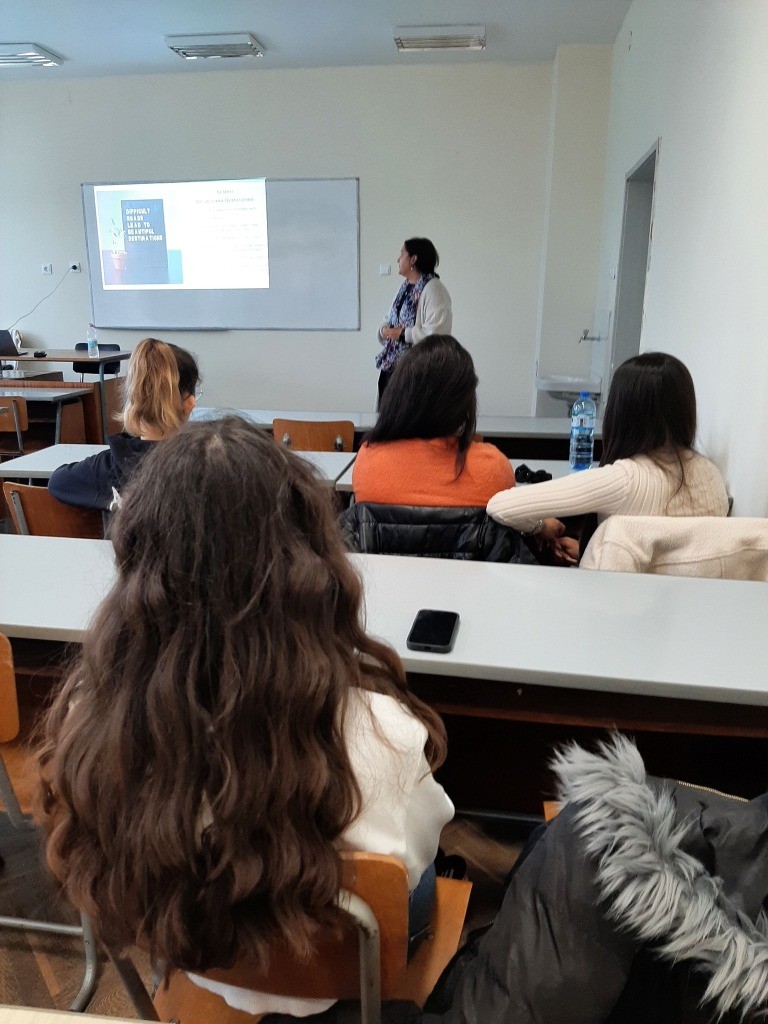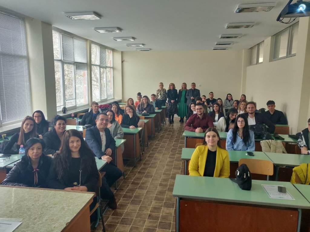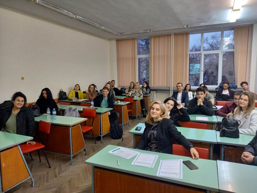 Студентите от специалност „Туризъм“ към Факултет по обществени науки и тези от специалност „Организация и управление на хотели и ресторанти“ към Колеж по туризъм имаха удоволствието да присъстват на вдъхновяваща презентация на гост-лектор Биляна Неделчева, управител на хотел „България“, в рамките на часовете по дисциплината „Маркетинг в туризма“.
