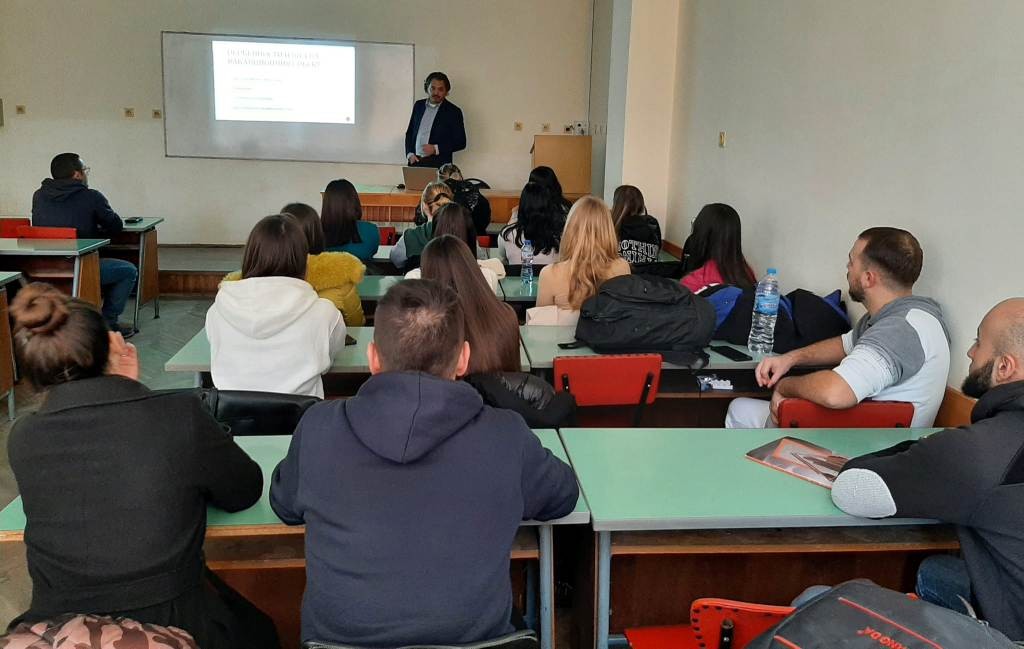 Дни преди големия празник на Бургас- Никулден, в часовете по "Мениджмънт в хотелиерството" гостува Николай Ангелов, комплексен управител на ваканционен комплекс "Green Life Resorts".