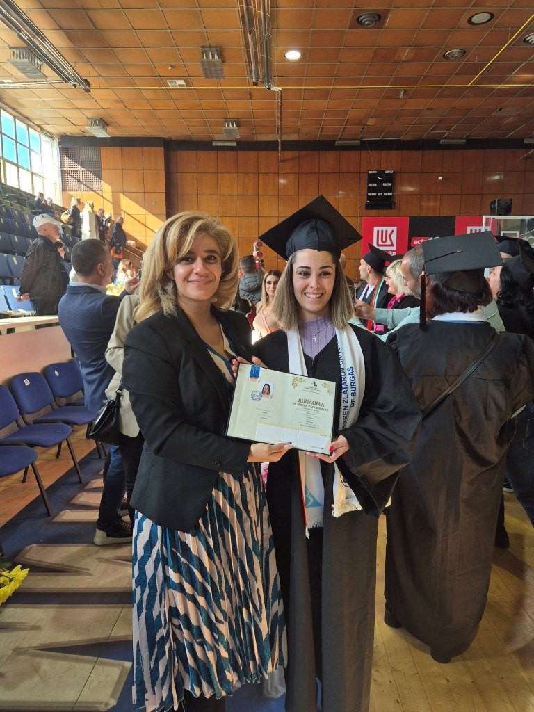 На тазгодишната церемония на Университет "Проф. д-р Асен Златаров"-Бургас "Студент на годината 2024", организирано от Студентски Съвет , бе отличена  Калина Сиромахова, студентка от 4-ти курс,  специалност "Туризъм".